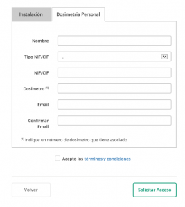 Entrar en Dosimetria Personal (NO en INSTALACION), rellena los datos y se te enviará el acceso.